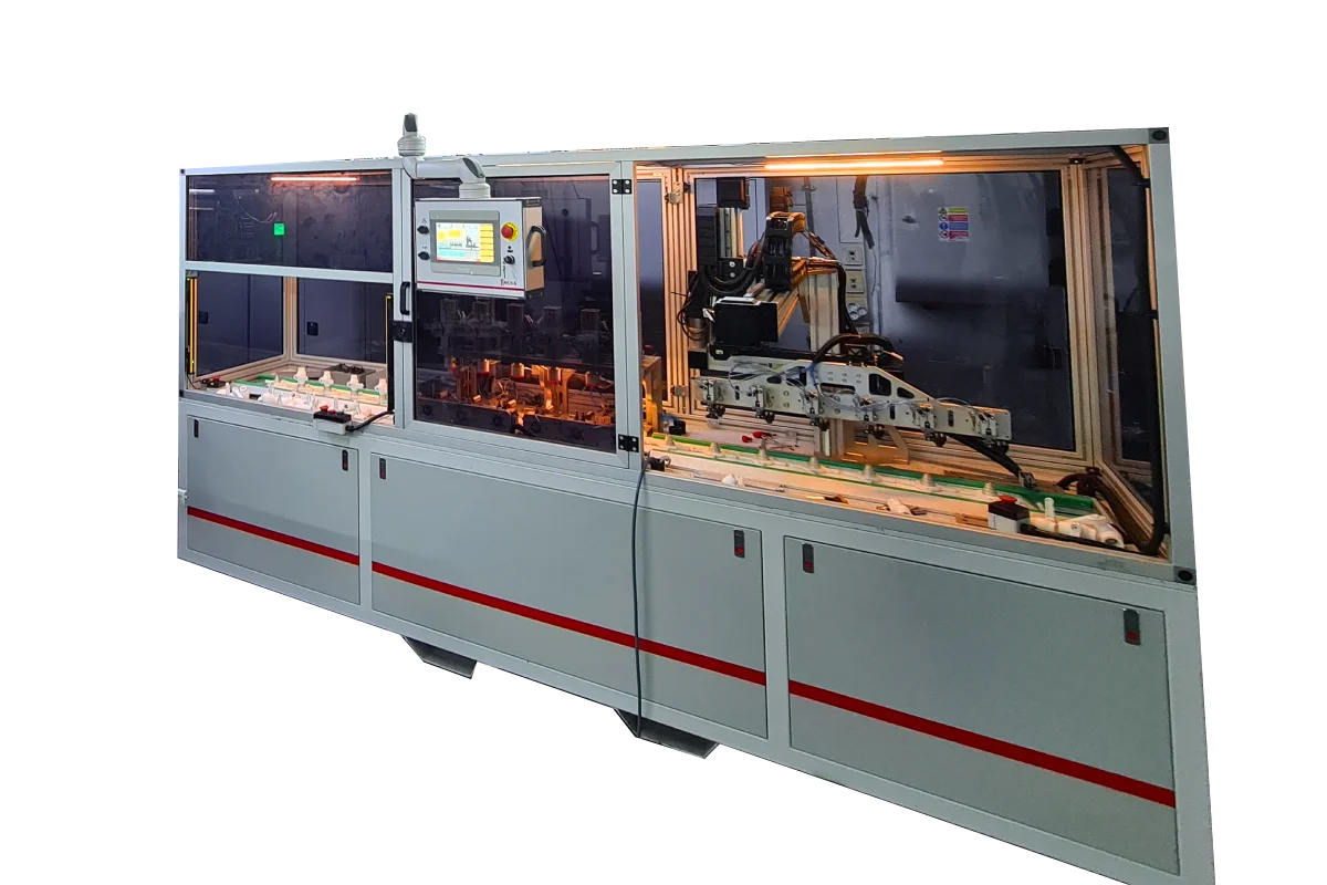 - Makine, yüksek hassasiyetli sızdırmazlık testi ile ürünlerin kalite ve güvenilirliğini garanti altına alırken, robotlu otomasyon sistemi sayesinde montaj süreçlerinde hız, tekrarlanabilirlik ve operatör bağımsızlığı sağlar.